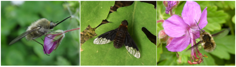 szürke pöszörlégy (Bombylius cinerascens), nkrisz23, https://www.izeltlabuak.hu/talalat/255507, CC BY 4.0 / közönséges gyászlégy (Hemipenthes morio), Kecskés Ferenc, Magyar Környezeti Nevelési Egyesület, teljes méretű kép, CC-BY-SA-4.0 / szegélyes pöszörlégy (Bombylius major), Szalma Laura, teljes méretű kép, CC-BY-SA-4.0