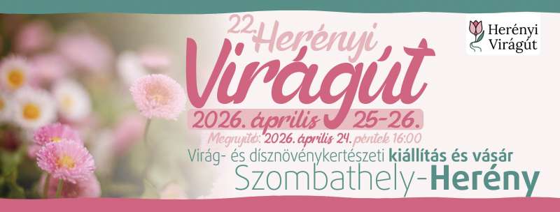 Programok: Látogass el a 22. Herényi Virágútra, merülj el a virágos forgatagban, kóstold meg a vásári ételeket, italokat és élvezd a változatos kulturális, szórakoztató, gyermek programjainkat! A Herényi Kulturális és Sportegyesület szimbolikus nagy rendezvényévé vált Herényi Virágút, amely elnyerte el a Nyugat-Dunántúl Kiemelt Kulturális és Örökségturisztikai Rendezvénye címet. A program célja a helyben élő, illetve tevékenykedő kertészeteknek bemutatkozási és értékesítési lehetőség biztosítása a nagyközönség előtt. Emellett fontos cél a hagyományok ápolása, népművészeti értékek terjesztése, valamint a virágosítás népszerűsítése és egy kellemes szabadidős, kulturális program biztosítása a látogatók részére szélesebb körben, határon innen és túl.